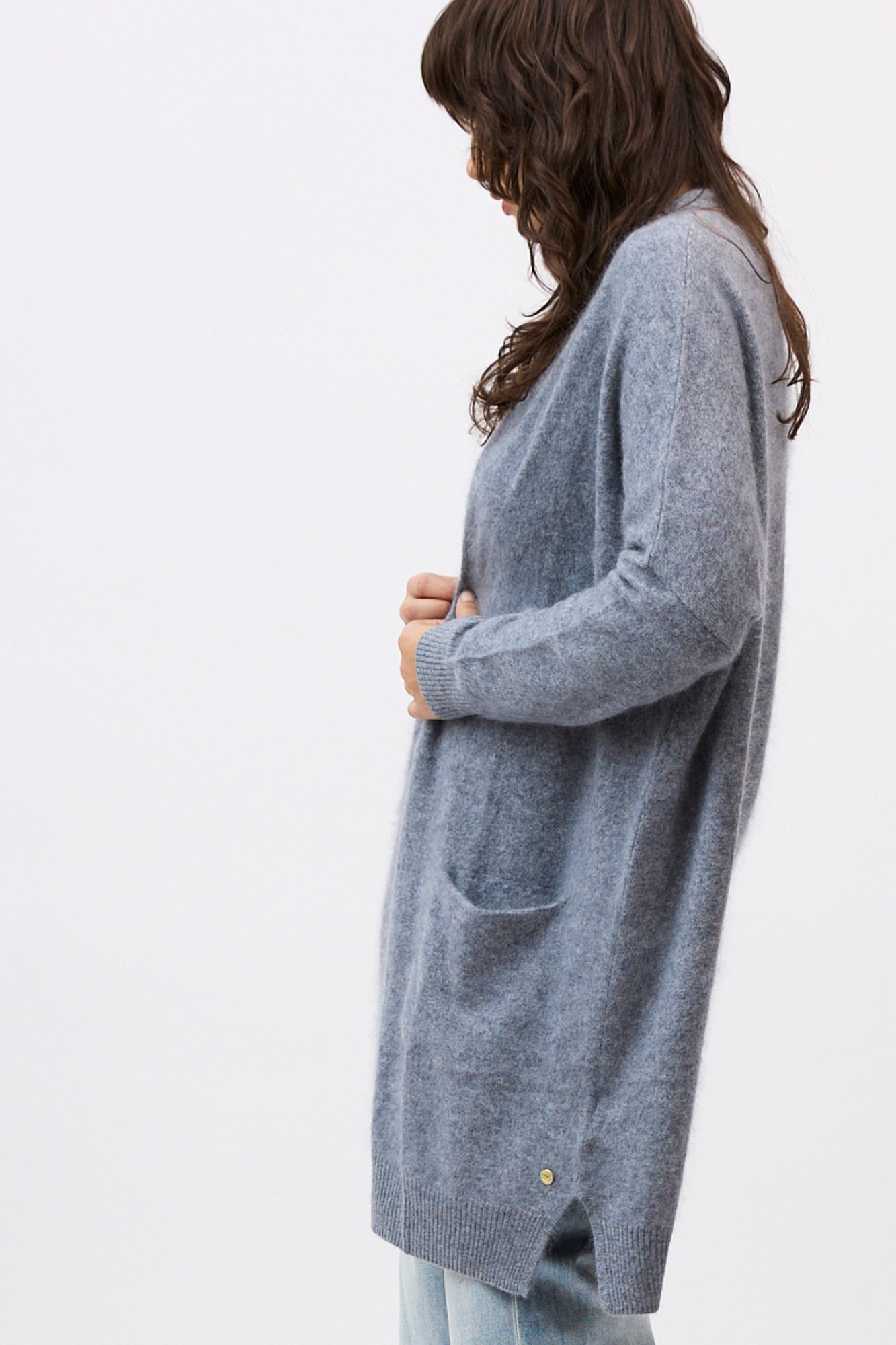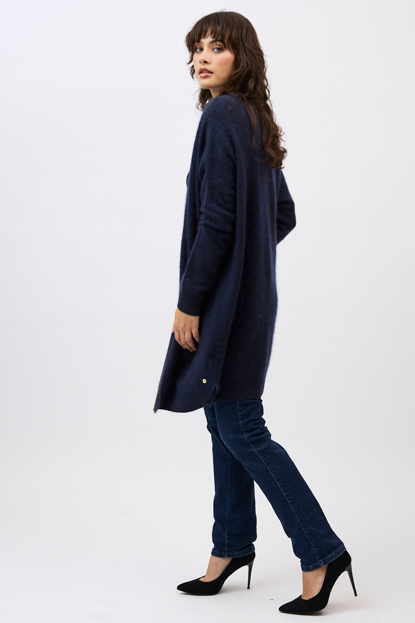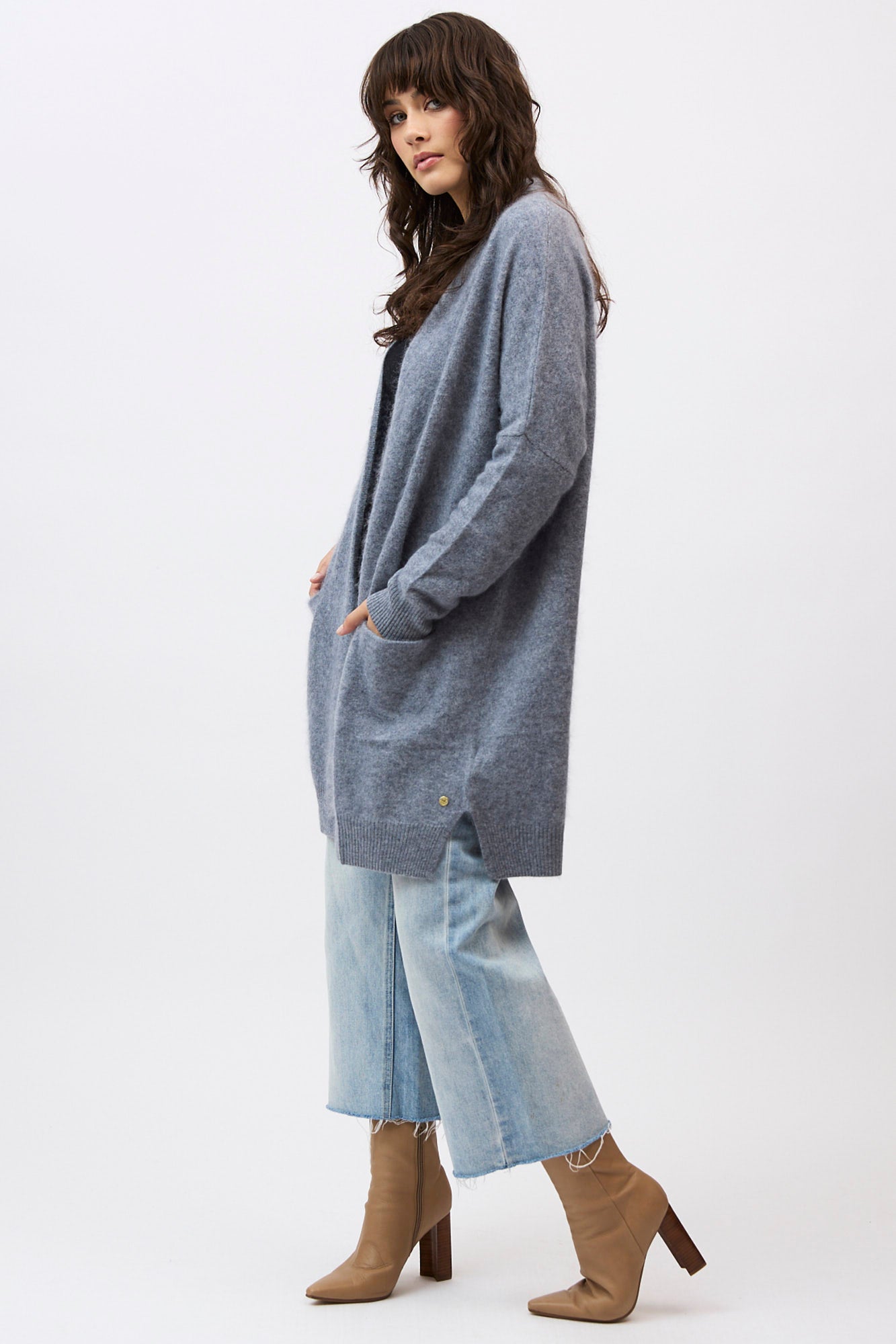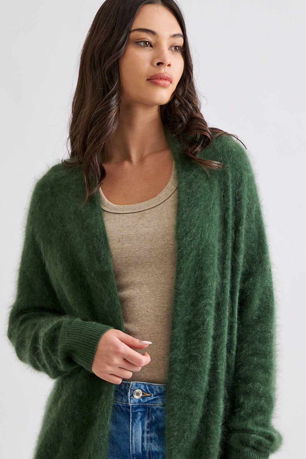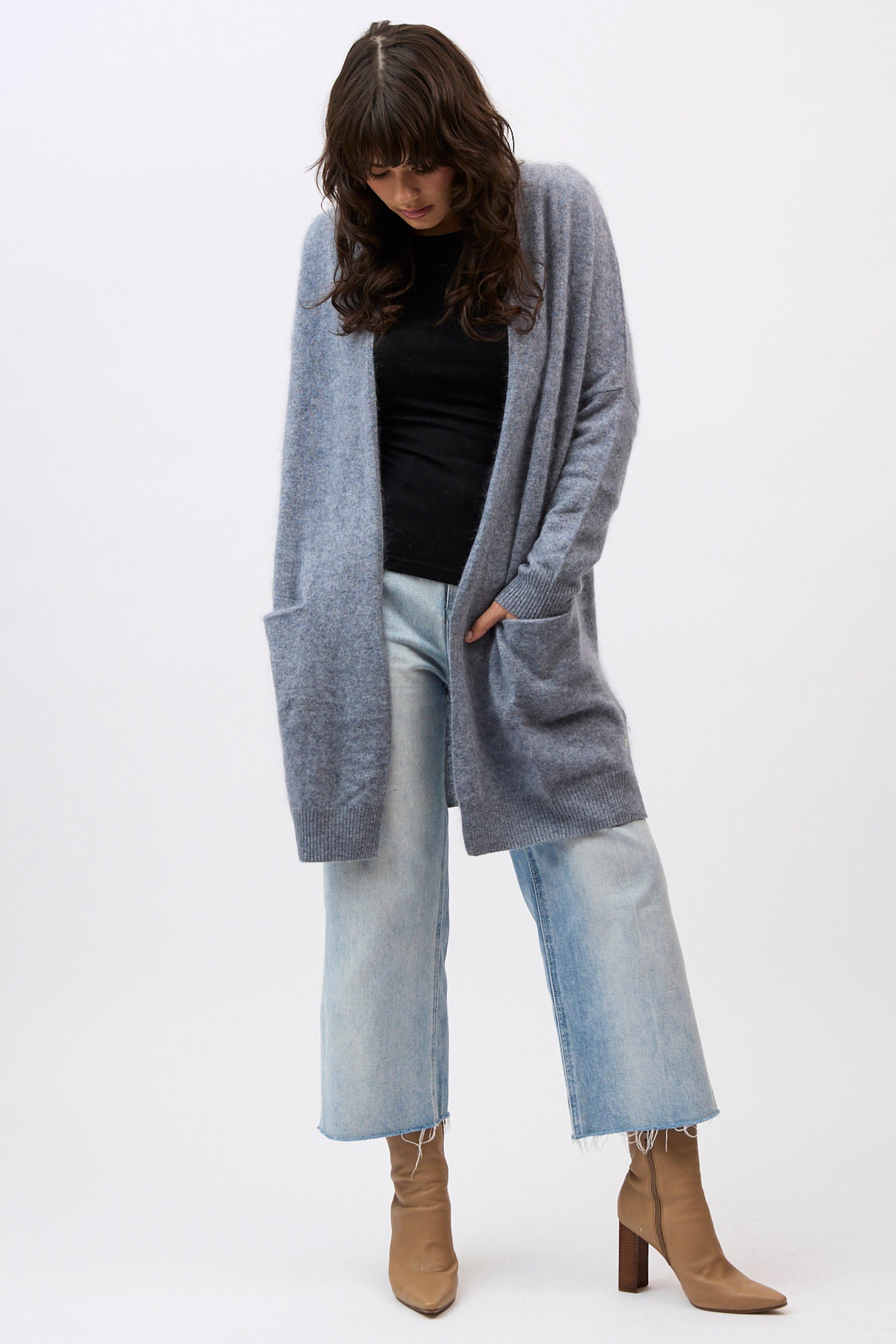 Designed with a longline, open-front silhouette, the Petra Cardi serves as the ultimate sensory layer. The generous proportions provide an elegant drape, showcasing the rich, cloud-like loft of our bespoke brushed finish.