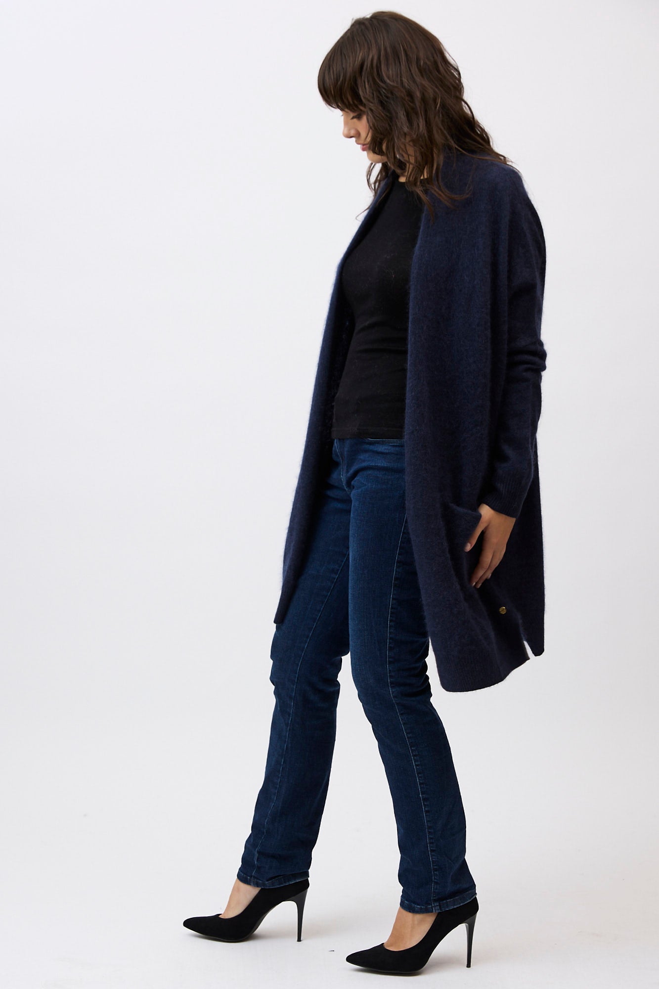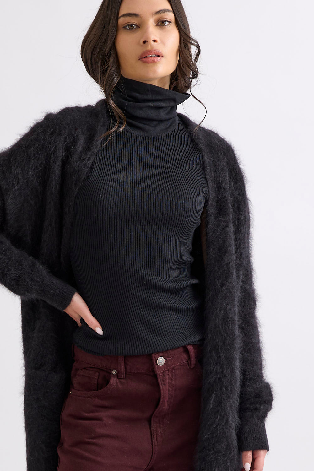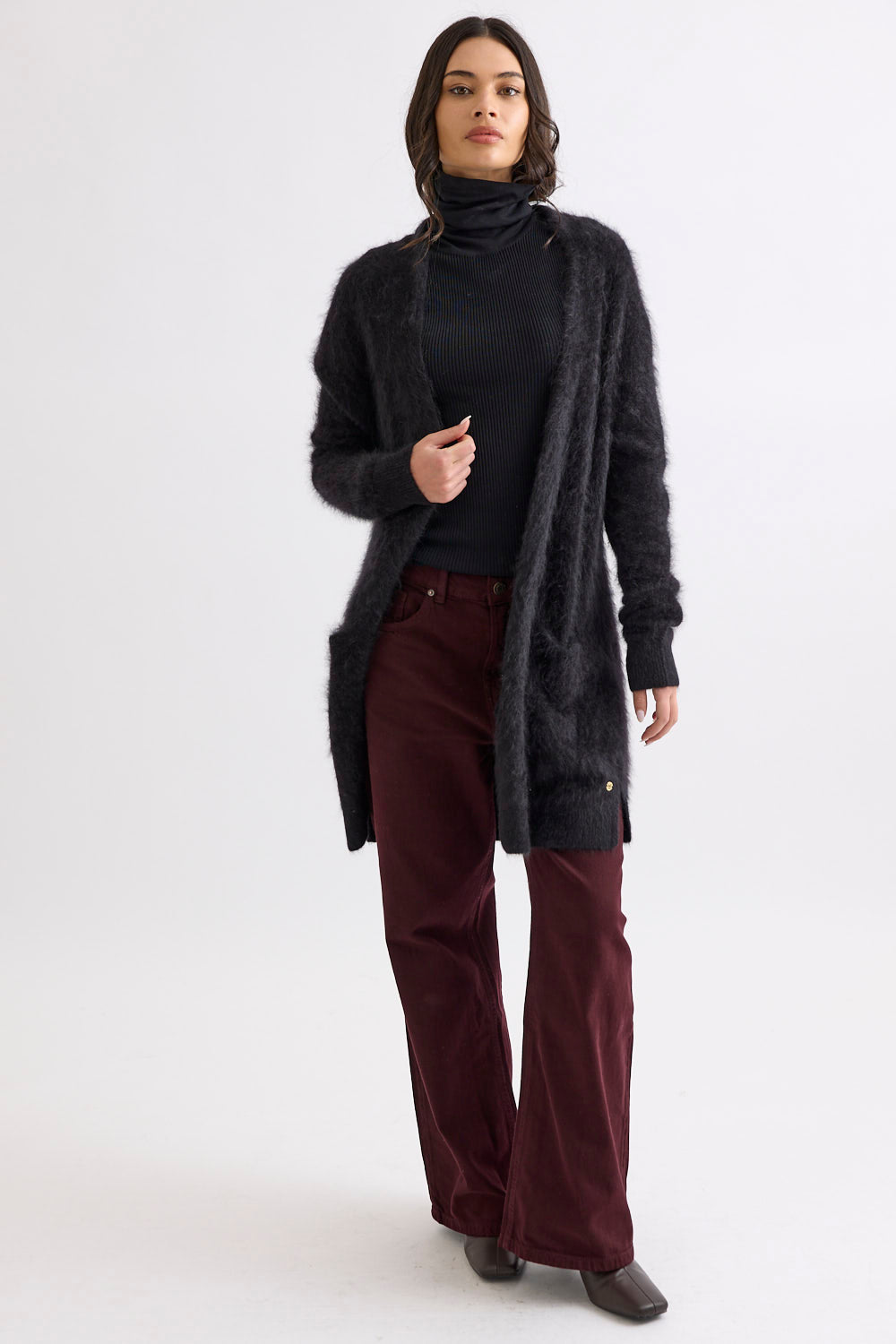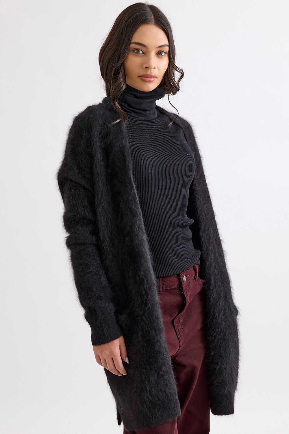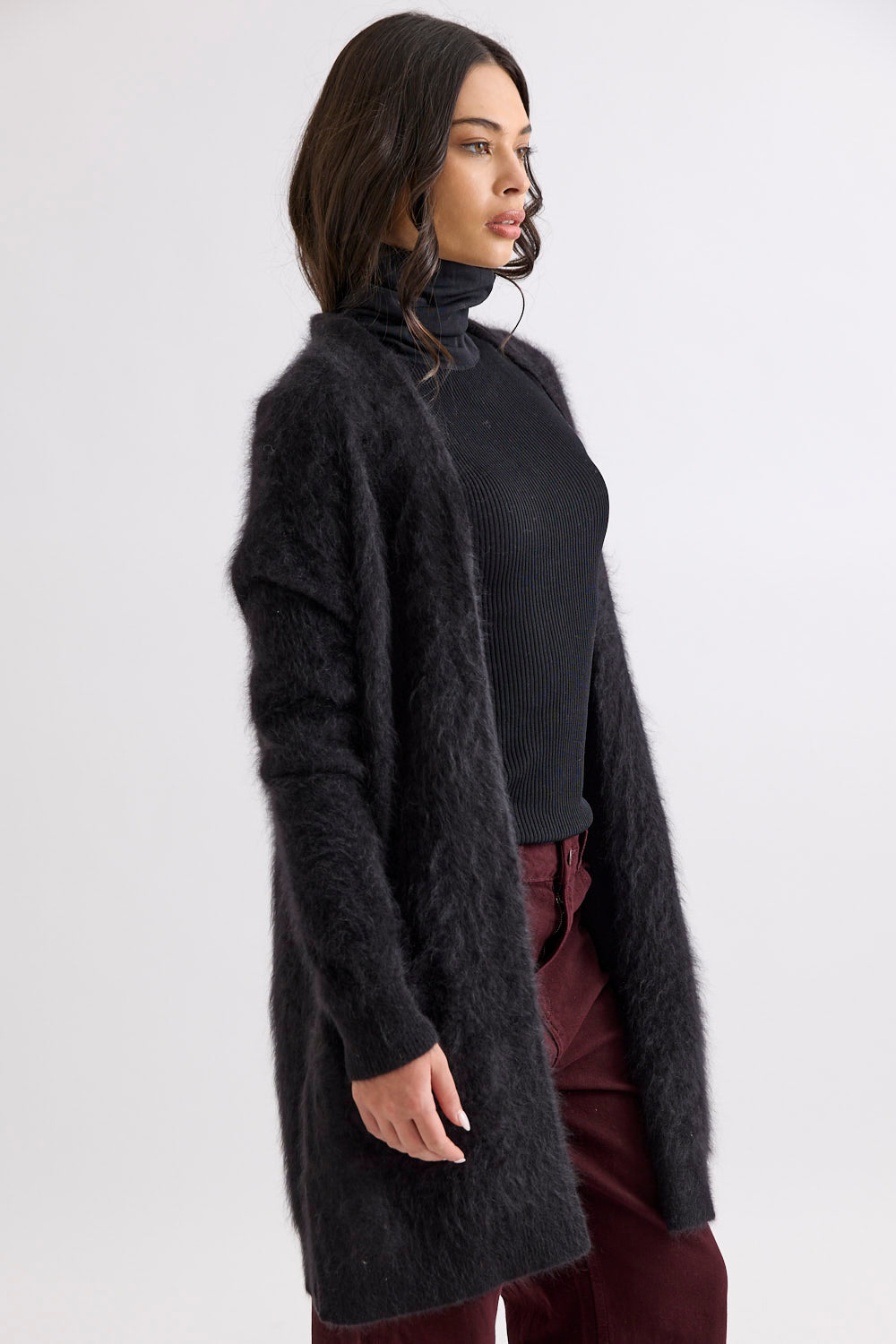 Designed with a longline, open-front silhouette, the Petra Cardi serves as the ultimate sensory layer. The generous proportions provide an elegant drape, showcasing the rich, cloud-like loft of our bespoke brushed finish.