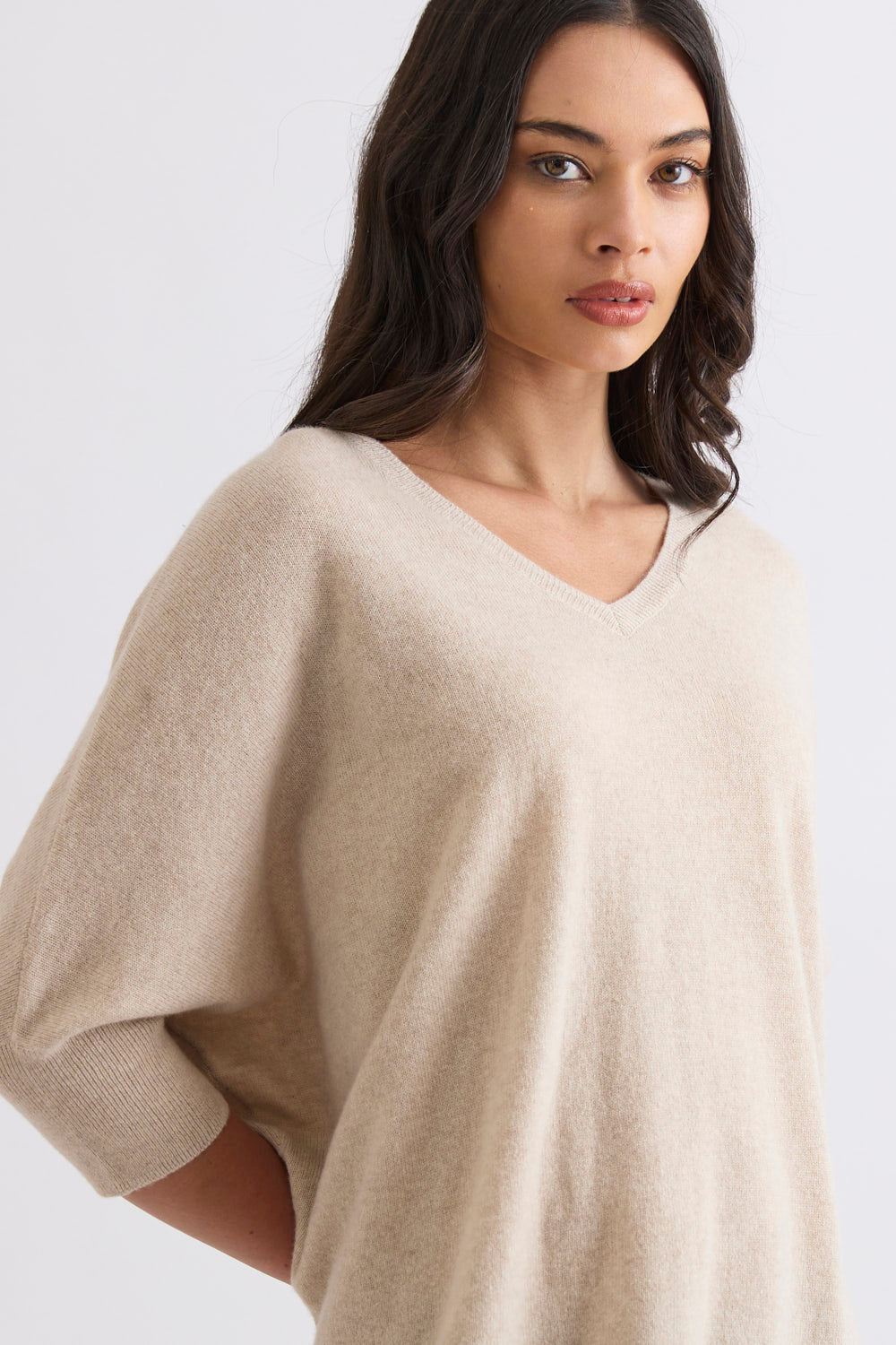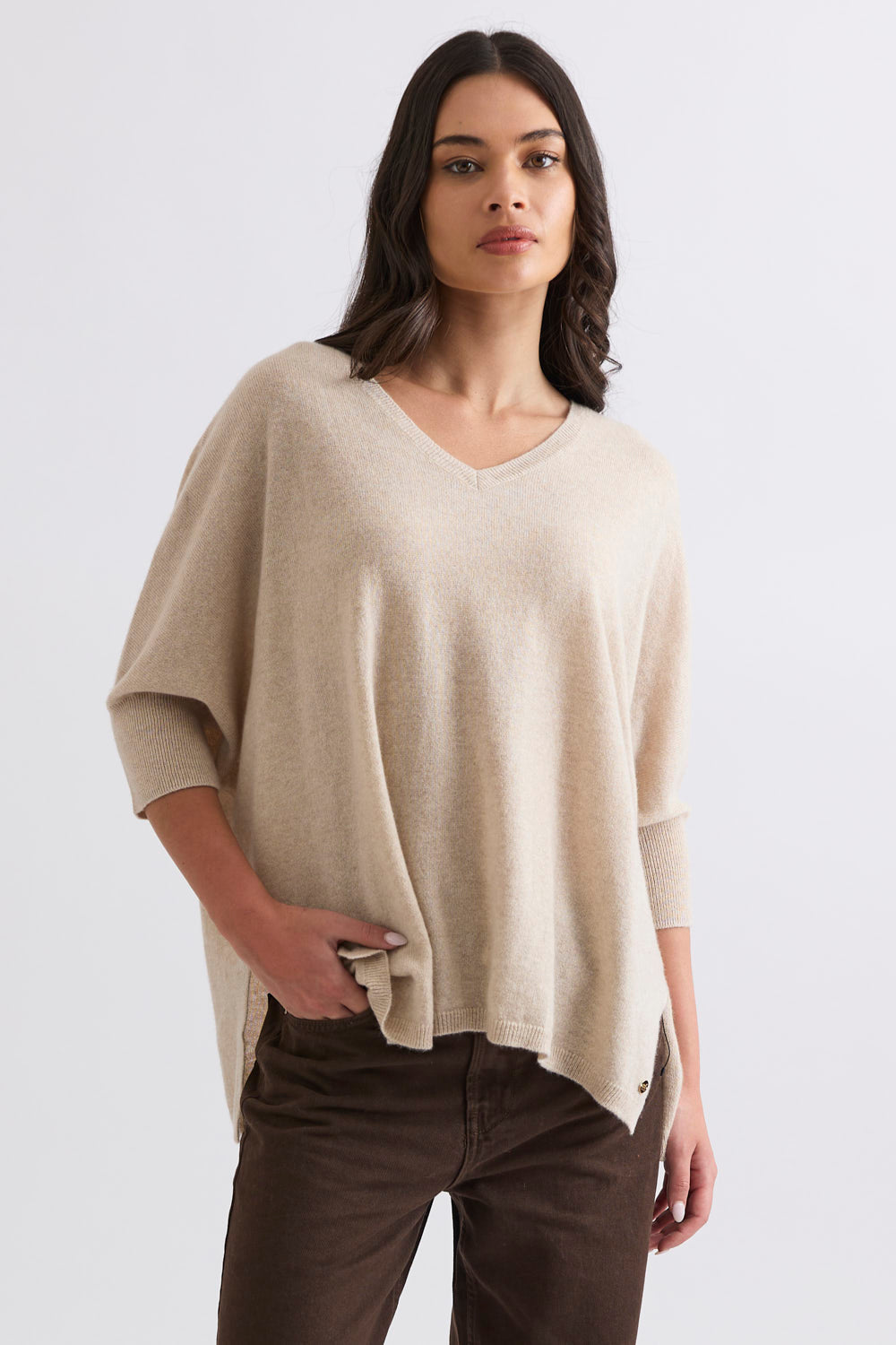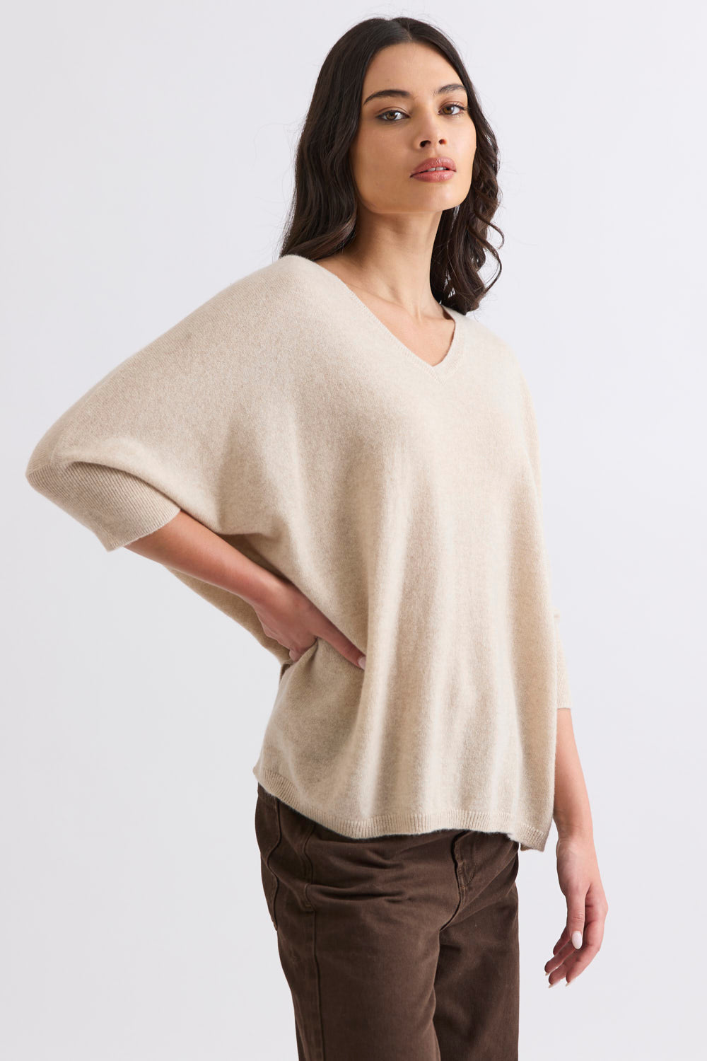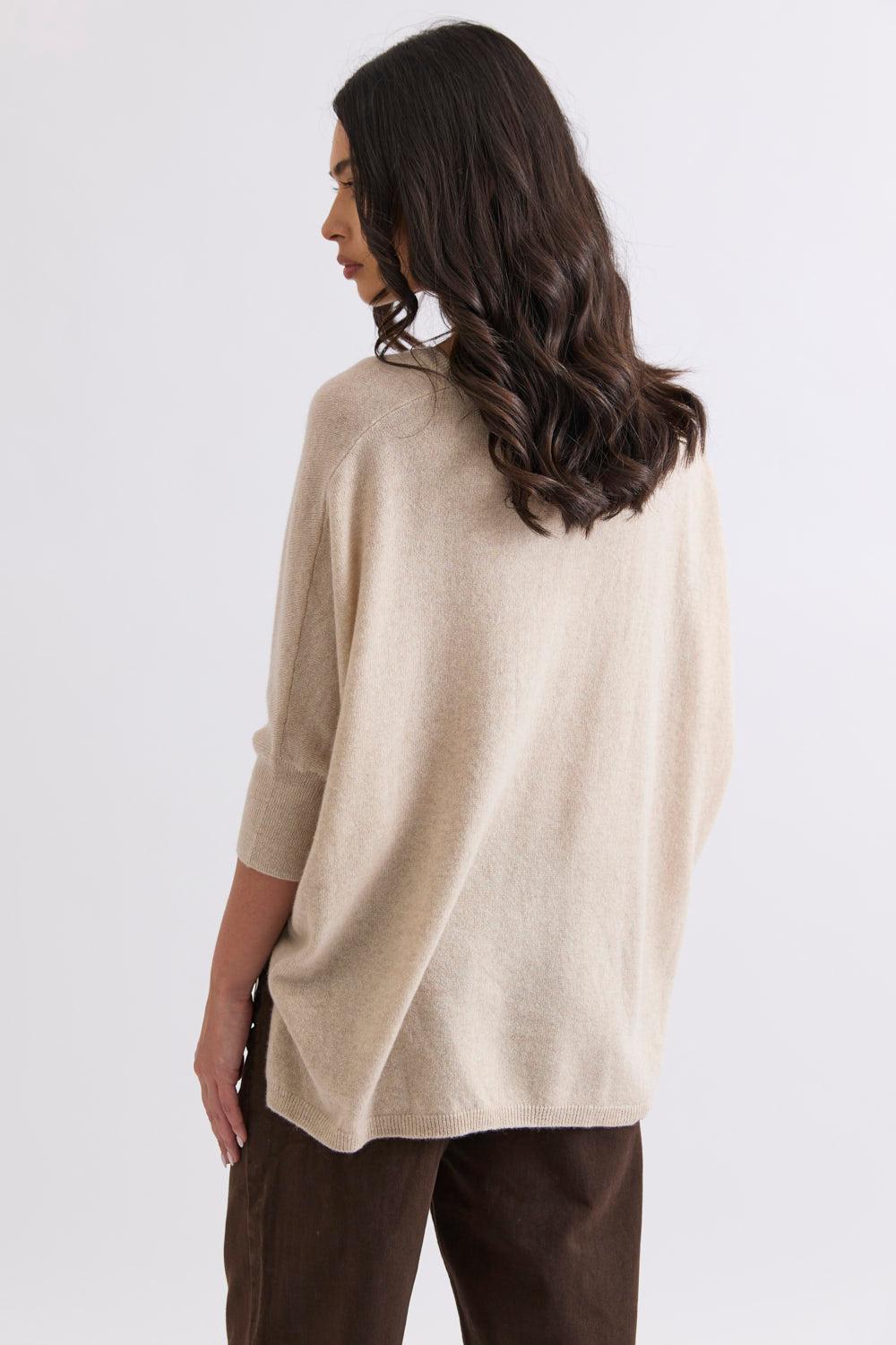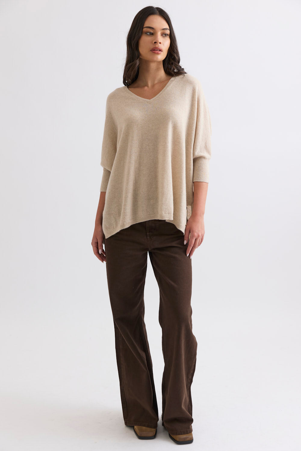 The lightweight and luxurious Hattie Wide Tee is our new everyday essential. This relaxed V-neck knit is spun from 100% cashmere and features a contemporary split hem with rib detailing. The 3/4 slim fit sleeves ensure a balanced silhouette that is both comfortable and flattering.