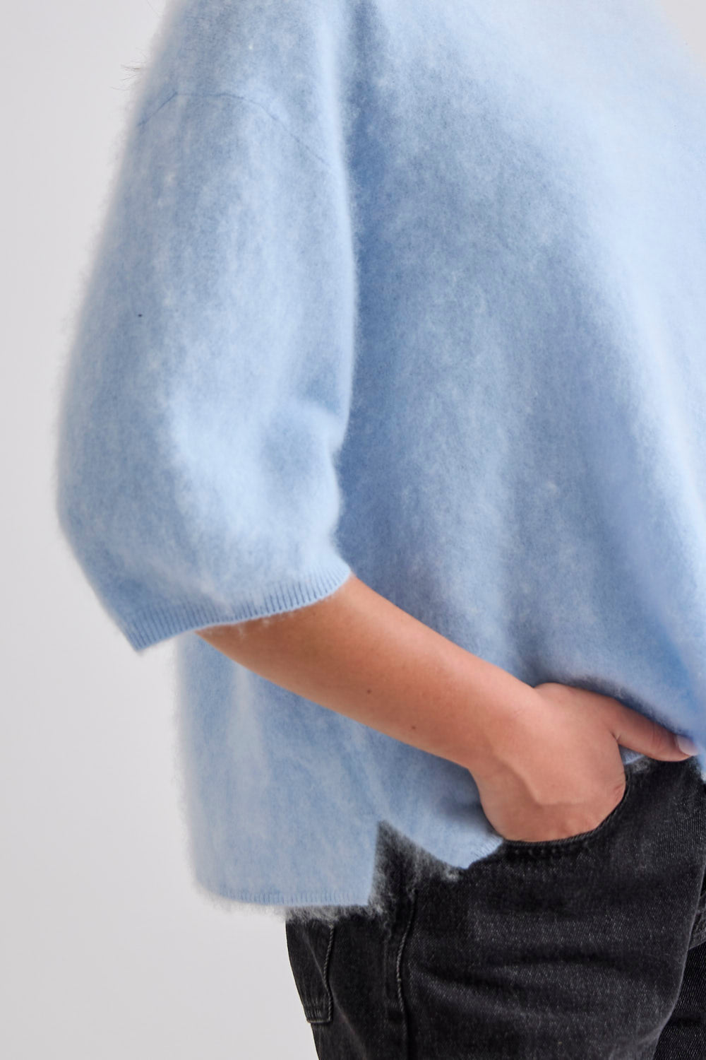 The Eliza Tee is a modern essential crafted in our bespoke brushed merino/cashmere yarn. Designed for effortless sophistication, it embodies an elevated everyday staple with a serene sense of luxury.