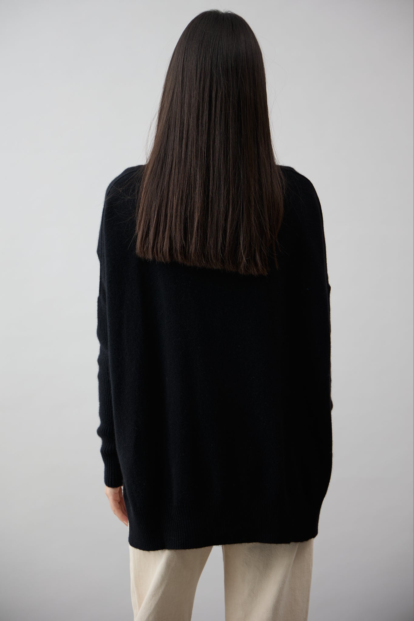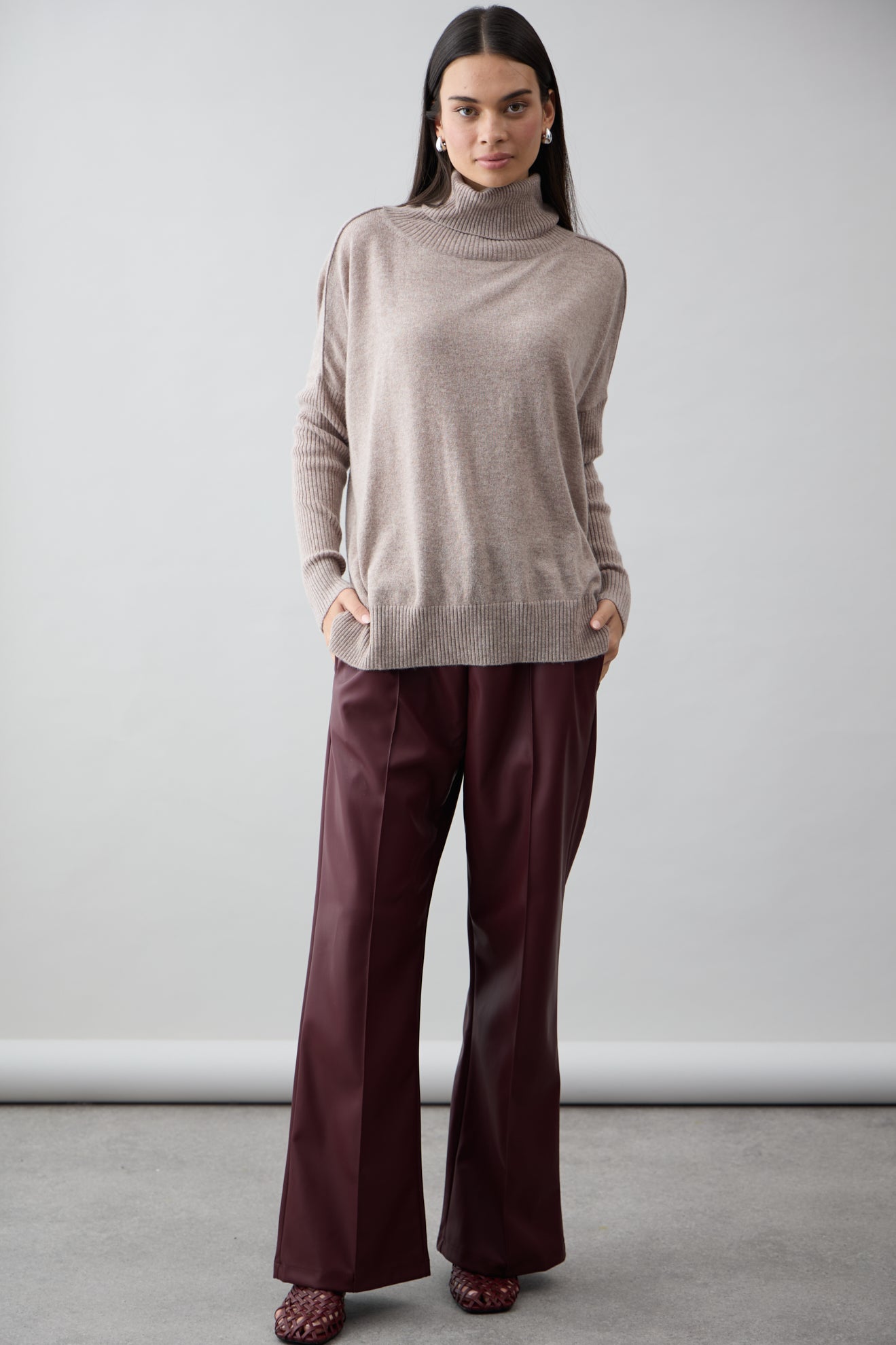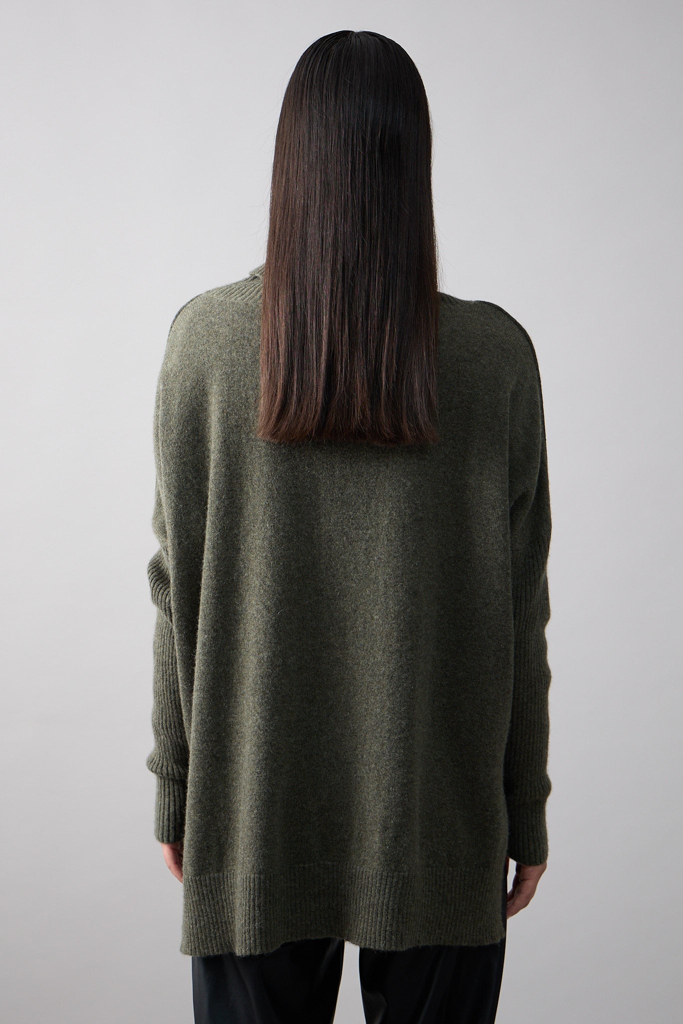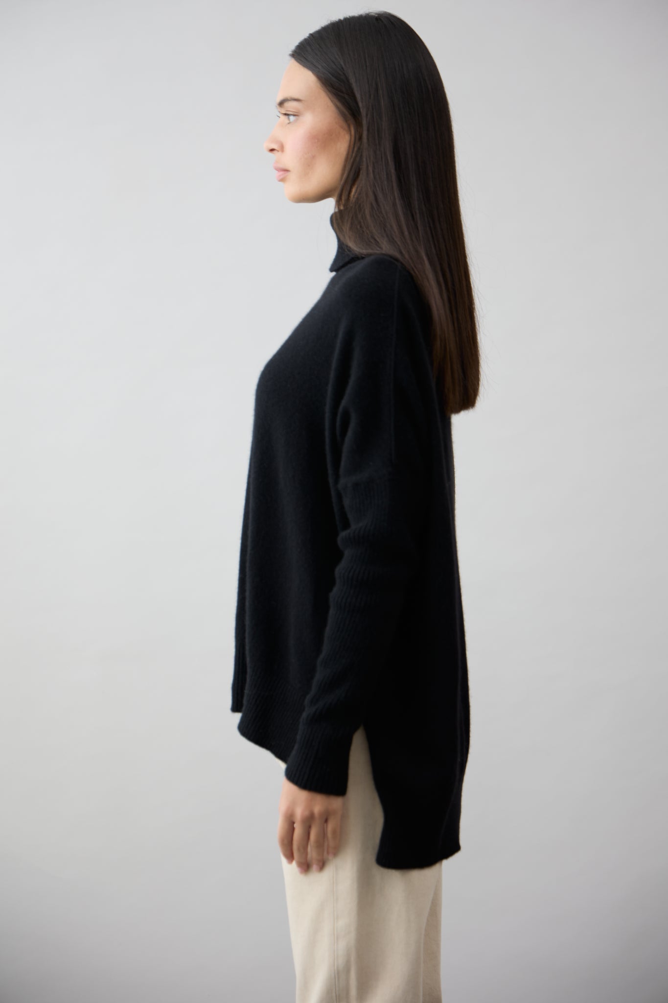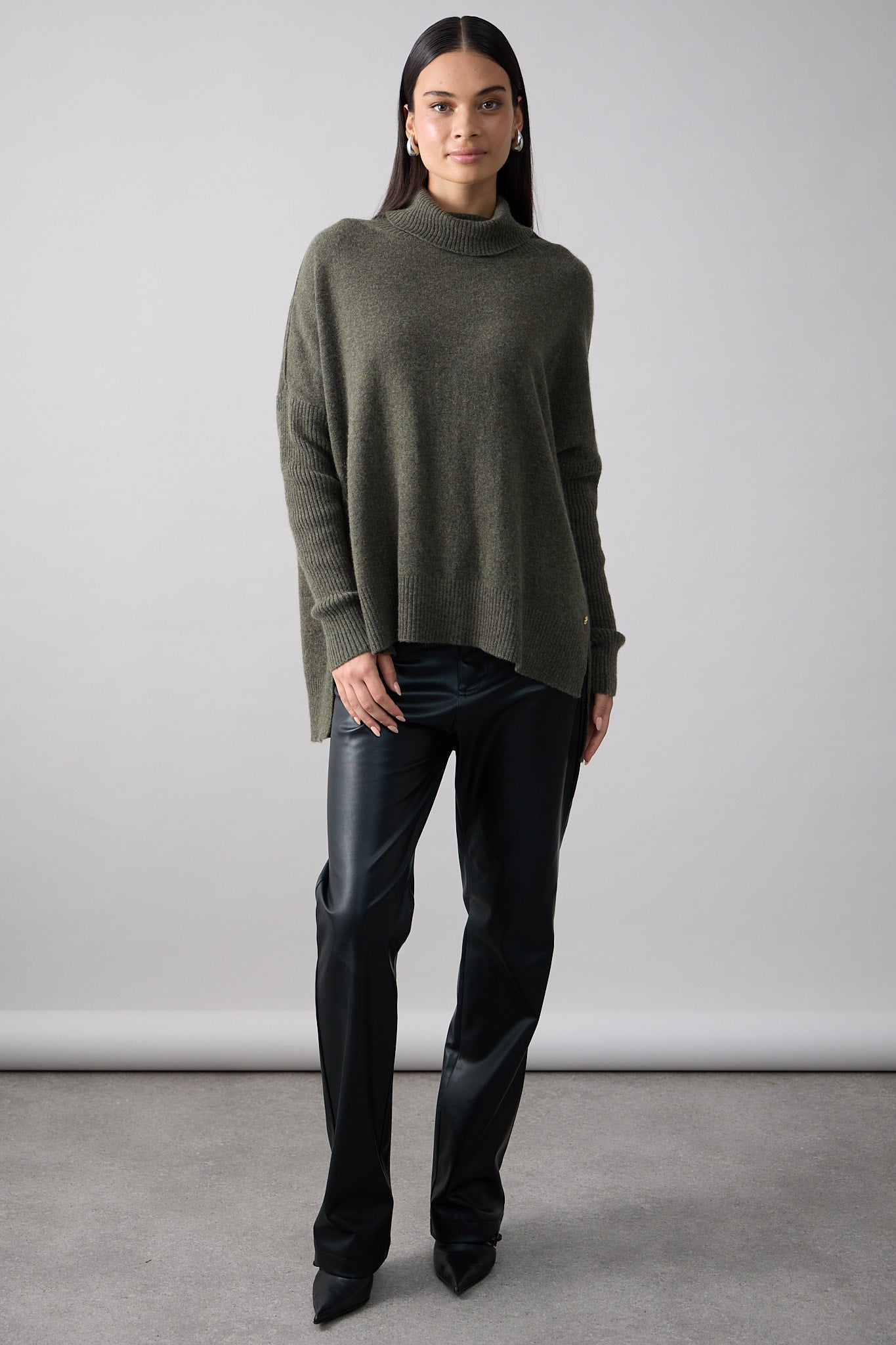 This timeless roll-neck knit is made from 100% Mongolian Cashmere. Featuring a flattering rib detail across the hemline and sleeves. The stepped back and side splits creates a relaxed drape to maximise comfort. This classic style looks great over jeans and is a winter wardrobe staple.