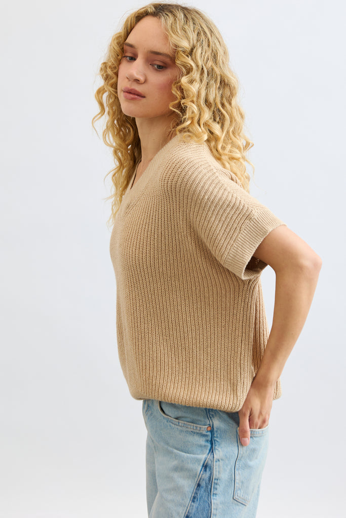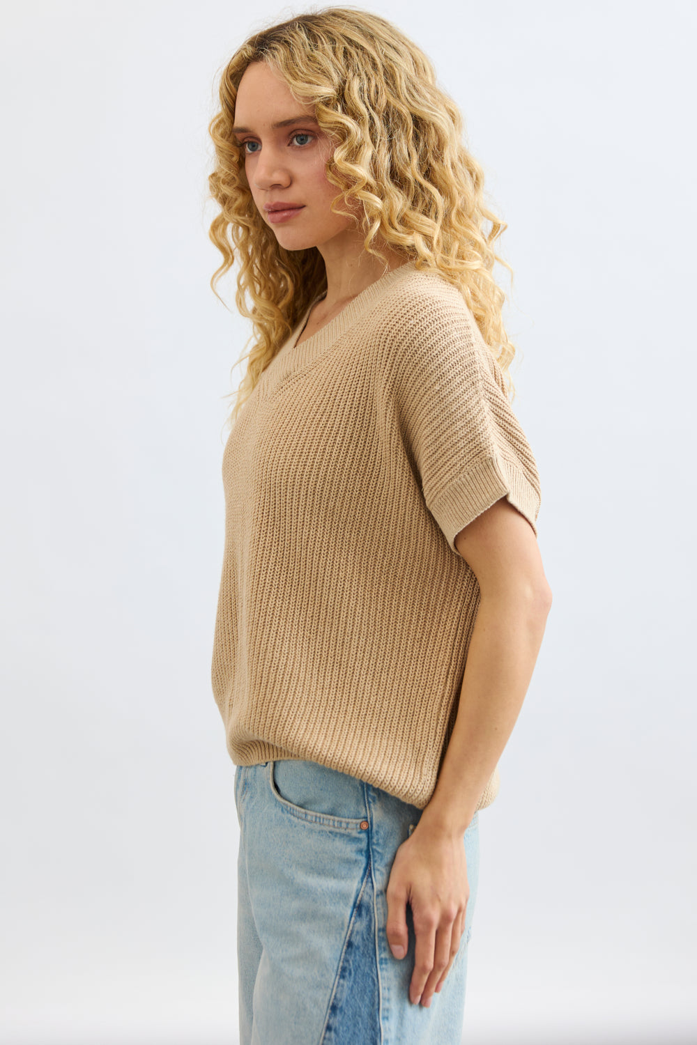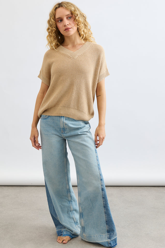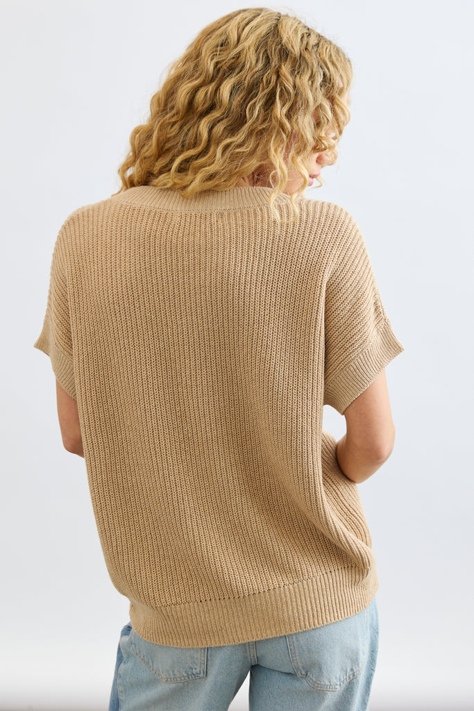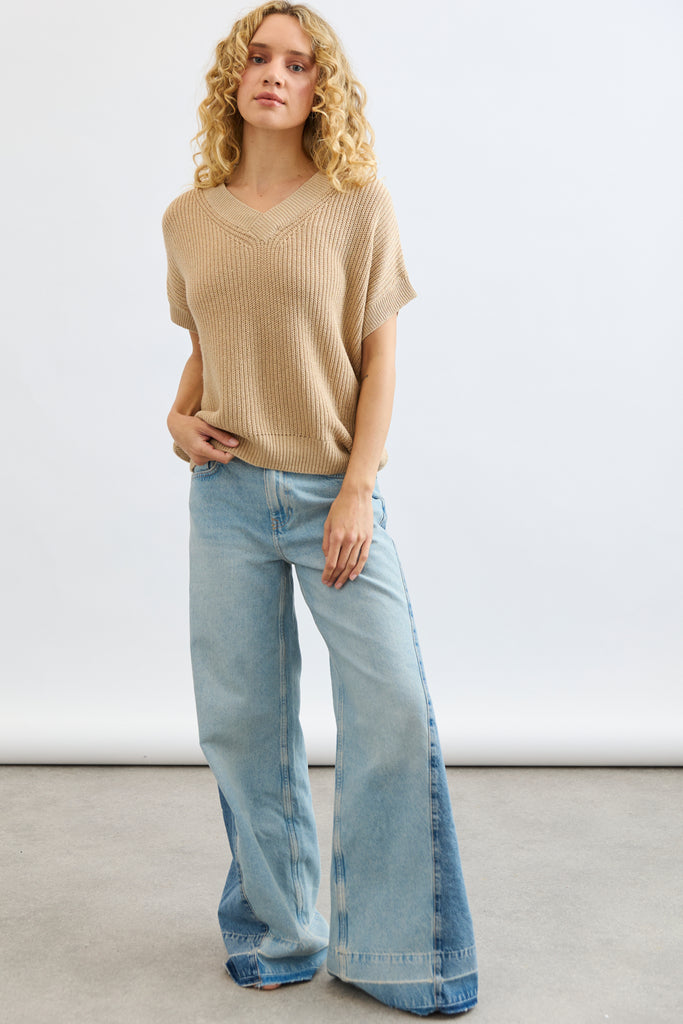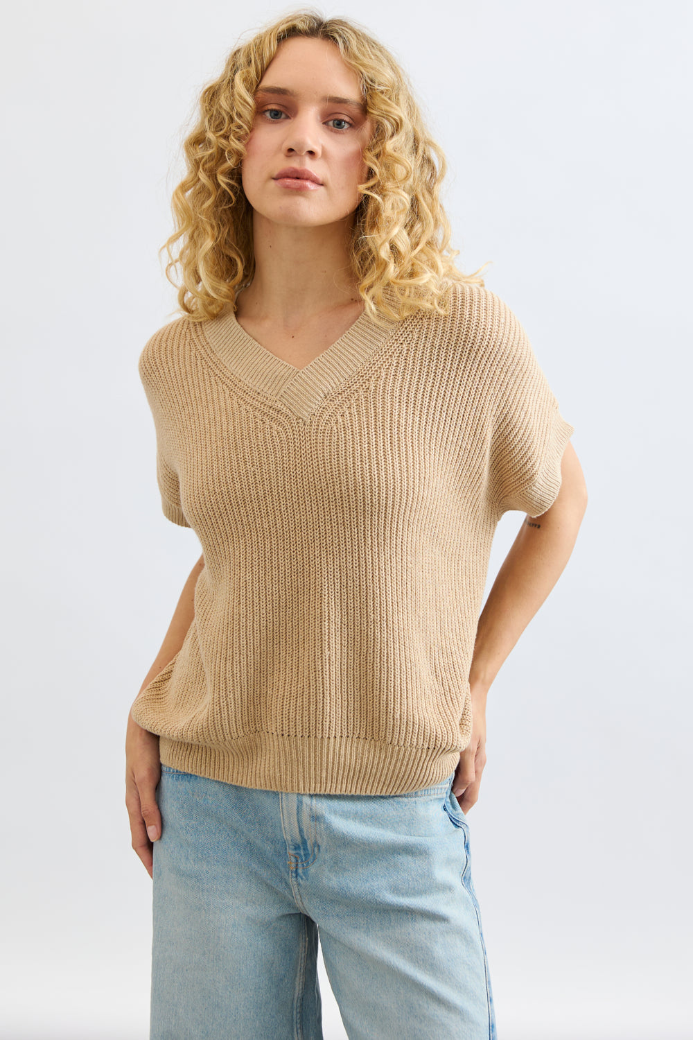 The Elissa vest offers a relaxed fit with a V-neckline and short sleeves.