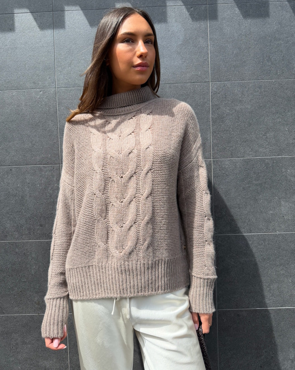 Soft, cosy, and effortlessly stylish, the Fabian Cable Funnel is destined to become your most-loved sweater of the season.